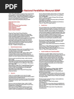 Hal tersebut sangatlah membantu dalam pekembangan akal dan mental peserta didik. • Standar Kompetensi Lulusan Standar kompetensi lulusan adalah kualifikasi kemampuan lulusan yang mencakup sikap, pengetahuan, dan keterampilan. Standar kompetensi lulusan digunakan sebagai pedoman penilaian dalam penentuan kelulusan peserta didik dari satuan pendidikan. • Standar Pendidik dan Tenaga Kependidikan Standar pendidik dan kependidikan adalah kriteria pendidikan prajabatan dan kelayakan fisik maupun mental, serta pendidikan dalam jabatan. Pendidik harus memiliki kualifikasi akademik dan kompetensi sebagai agen pembelajaran, sehat jasmani dan rohani, serta memiliki kemampuan untuk mewujudkan tujuan pendidikan nasional. • Standar Sarana dan Prasarana Standar sarana dan prasarana adalah standar nasional pendidikan yang berkaitan dengan kriteria minimal tentang ruang belajar, tempat berolahraga, tempat beribadah, perpustakaan, laboratorium, bengkel kerja, tempat bermain, tempat berkreasi dan berekreasi, serta sumber belajar lain, yang diperlukan untuk menunjang proses pembelajaran, termasuk penggunaan teknologi informasi dan komunikasi. • Standar Pengelolaan Standar pengelolaan adalah standar nasional pendidikan yang berkaitan dengan perencanaan, pelaksanaan, dan pengawasan kegiatan pendidikan pada tingkat satuan pendidikan, kabupaten/kota, provinsi, atau nasional agar tercapai efisiensi dan efektivitas penyelenggaraan pendidikan. • Standar Pembiayaan Standar pembiayaan adalah standar yang mengatur komponen dan besarnya biaya operasi satuan pendidikan yang berlaku selama satu tahun. Standar Penilaian Pendidikan Standar penilaian pendidik adalah standar nasional pendidikan yang berkaitan dengan mekanisme, prosedur, dan instrumen penilaian hasil belajar peserta didik.
